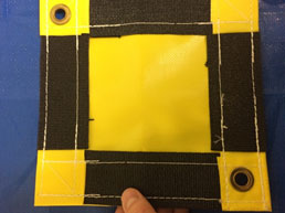 To reinforce grommets or D-rings, we sew 2” seatbelt webbing into every tarp around the fasteners prevent your tarp from fraying. Seatbelt webbing is not required, but if the tarp is going to be pulled often, seatbelt webbing is recommended to keep the fasteners in place on the tarp. If you do not desire seatbelt webbing, contact us or state so in your quote request.